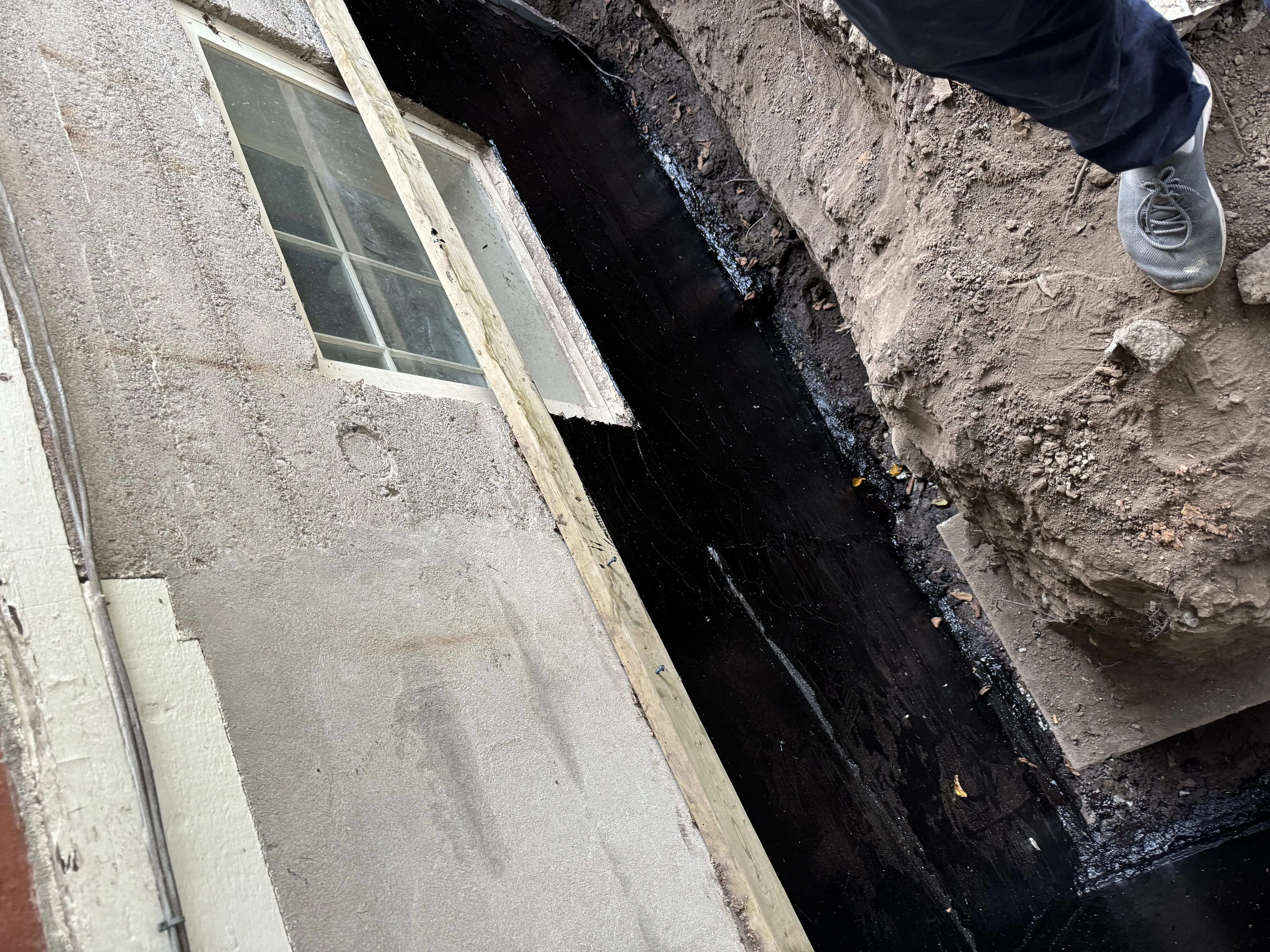 - Foundation wall surface prep and waterproofing application